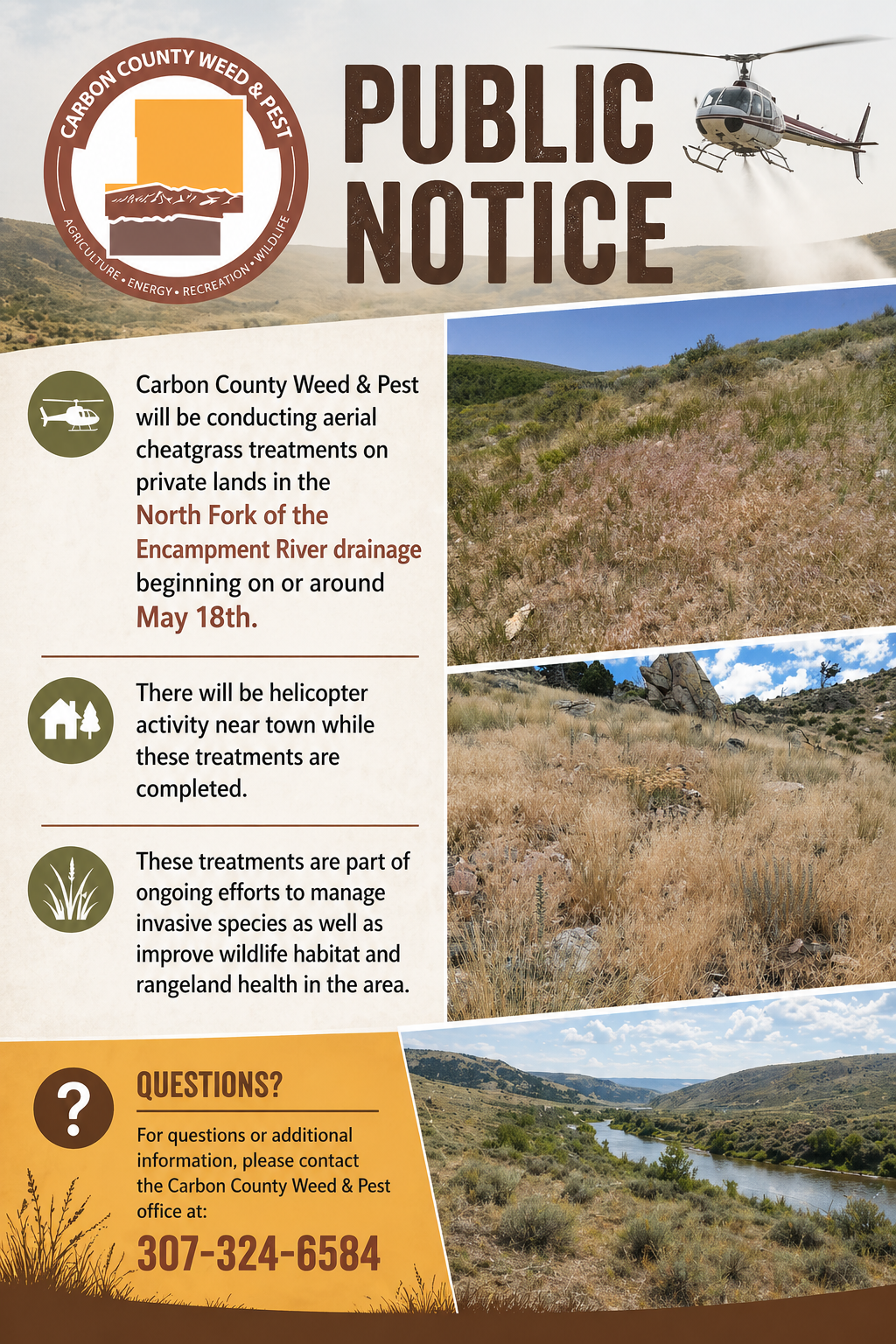 “The Carbon County Weed and Pest Control District is committed to proving environmentally sound noxious weed control to help promote a healthy ecosystem within Carbon County, Wyoming.”